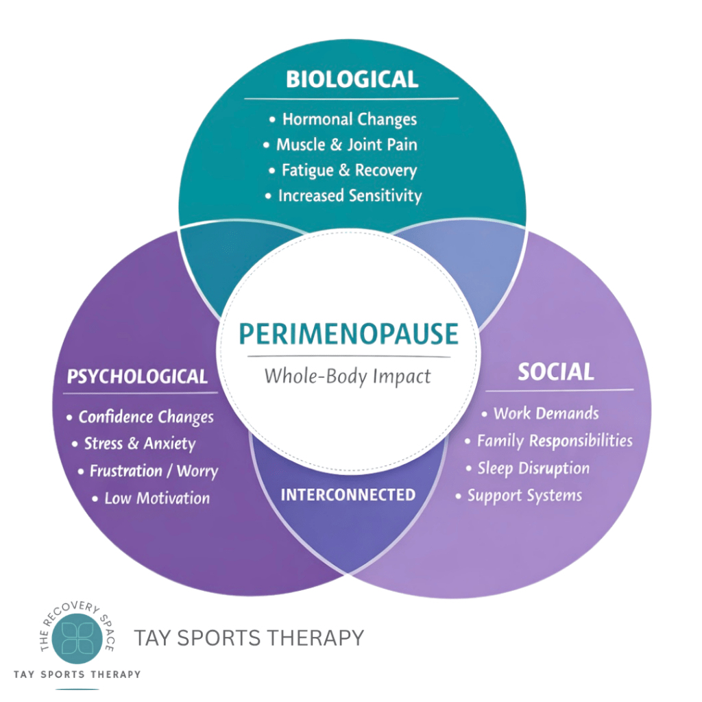 At Tay Sports Therapy, I offer Perimenopause Support & Treatment Sessions designed to support how your body feels and functions during this stage.