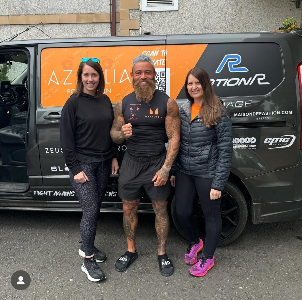 Angela from Tay Sports Therapy assisting Ashley Cain with his recovery and performance during his epic endurance challenge for The Azaylia Foundation Charity.